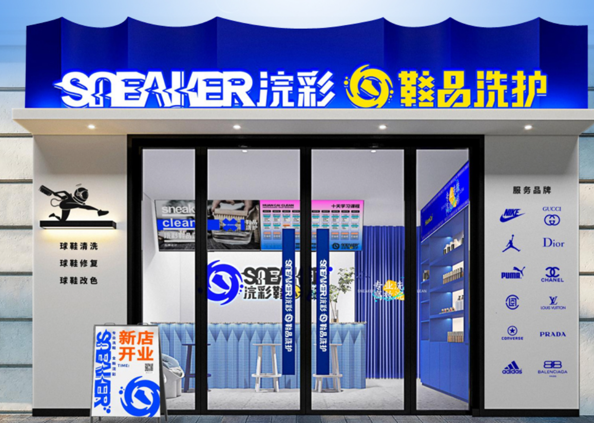浣彩鞋品洗护,是⼀家专注鞋类清洗、修复、护理、⾃主研发鞋类清洗产品、管理系统等多项服务的综合性品牌,品牌采⽤基于互联⽹、实体⻔店、物流系统、清洗⼯⼚模式的全新鞋护理念。